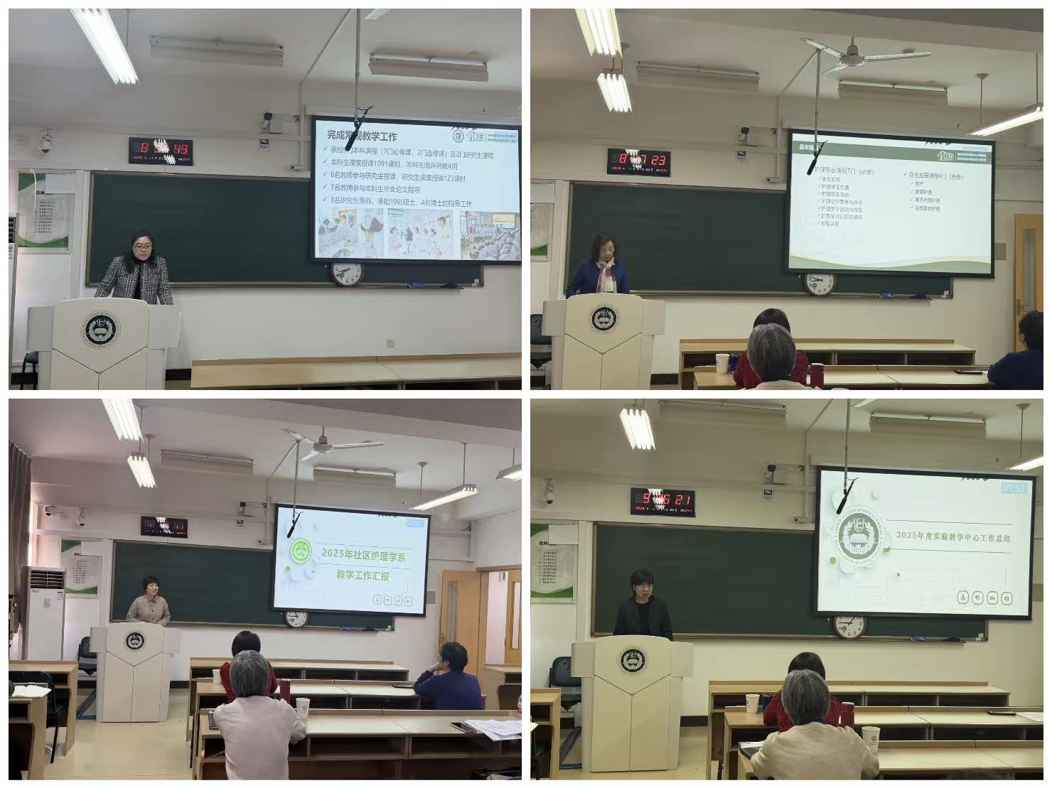 护理学院12名课程负责人,基础学院、马院人文学院、信息所、放射所、协和医院、生策学院等单位15名课程负责人从课程基本情况、课程建设情况、教学成效、未来建设计划等方面对2025-2026学年第一学期开设的31门课程进行了总结汇报。