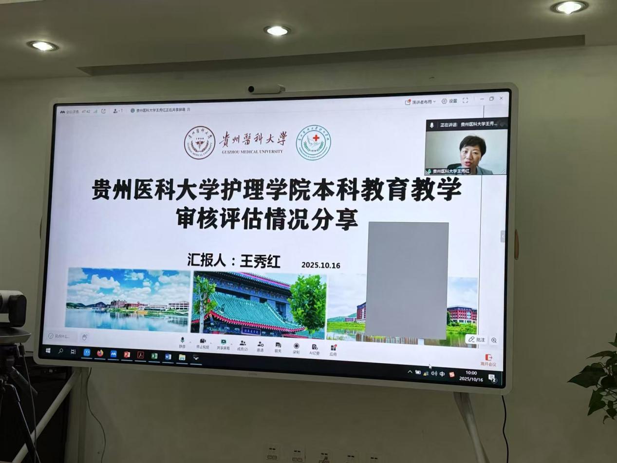 贵州医科大学护理学院王秀红院长从评估体系、材料准备及专家调阅要点等方面分享了审核评估的经验,特别强调课程思政与师德师风工作是审核评估的重点,也是学校提升本科教育质量与人才培养水平的亮点体现。