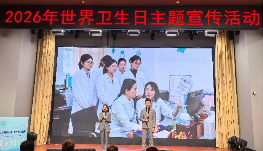 2026年4月7日世界卫生日,由国家卫生健康委主办、国家中医药局和国家疾控局协办,中国医学科学院承办的主题宣传活动在中国医学科学院北区报告厅举行。活动以“共享科技创新,携手共促健康”为主题,护理学院李峥教授团队成员——张欢副教授和2025届毕业生薛家俊在活动上分享了课题组社区轻度认知障碍老年人全周期智能评估与数智移动健康管理项目的实践成果,生动展现了将数智技术与老年健康服务深度融合的创新方案。